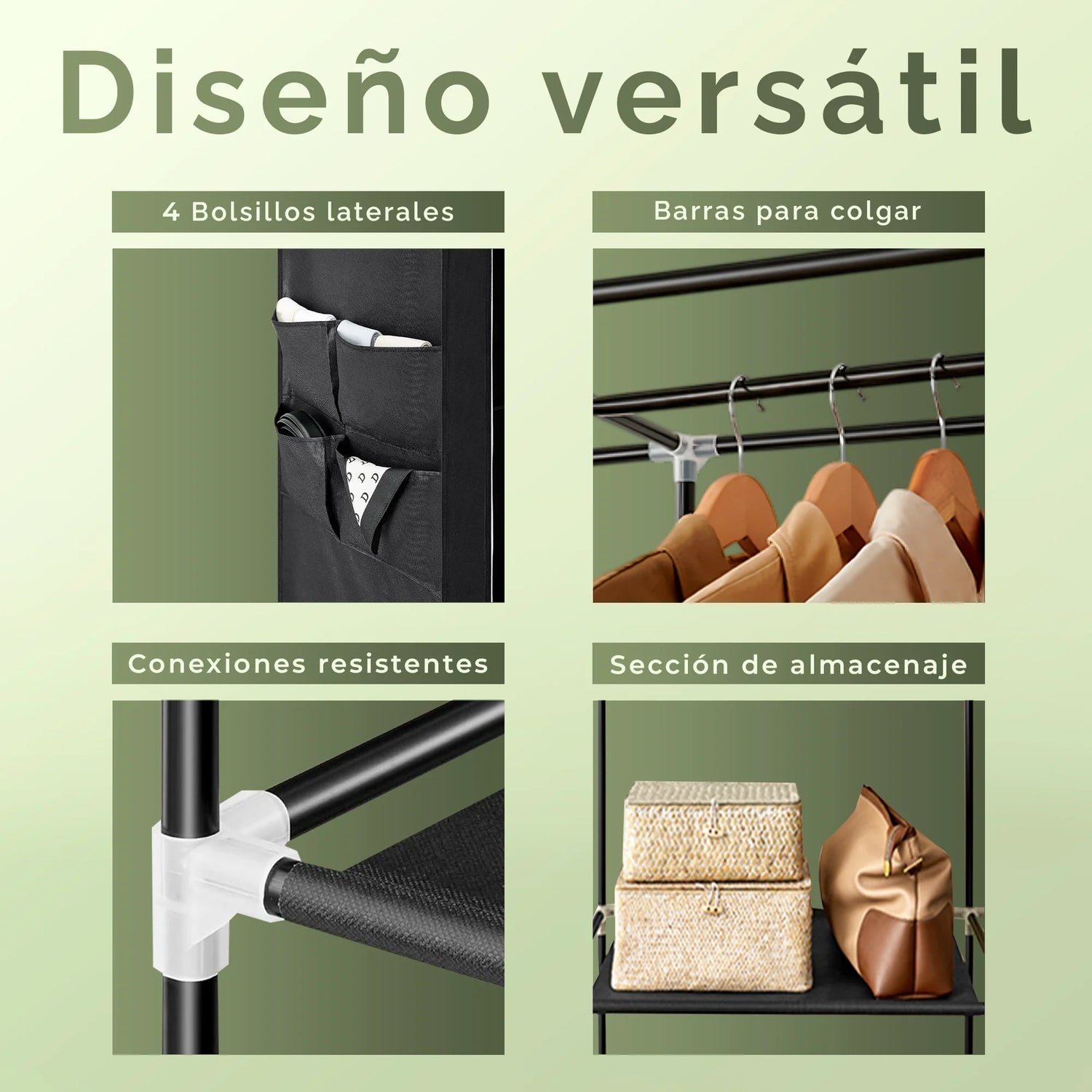 Nuestro armario de tela plegable está diseñado con materiales resistentes y un estilo moderno para ofrecerte un espacio ordenado, elegante y práctico. Transforma tu habitación en un lugar armonioso donde cada prenda tiene su sitio — sin esfuerzo y con estilo. 💫